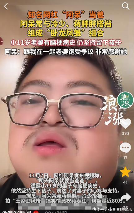 11月8号晚股利网,网红圈传出喜讯,曾以“卧龙凤雏”驰名网络的博主阿呆官宣妻子产下男孩,而且母子平安。